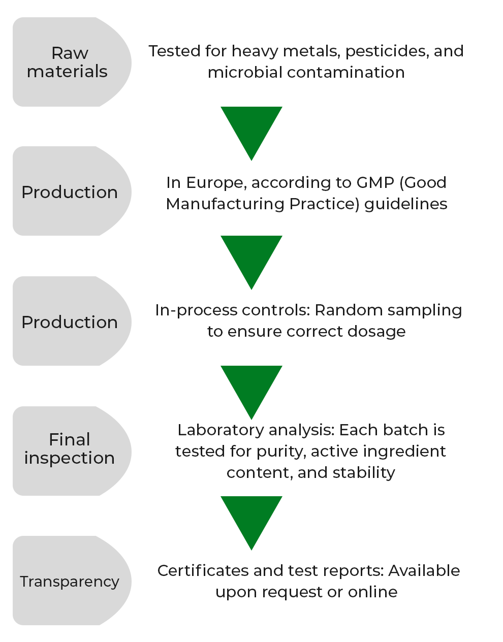 Each batch is tested for purity and quality to ensure the ingredients are present in the optimal dosage.